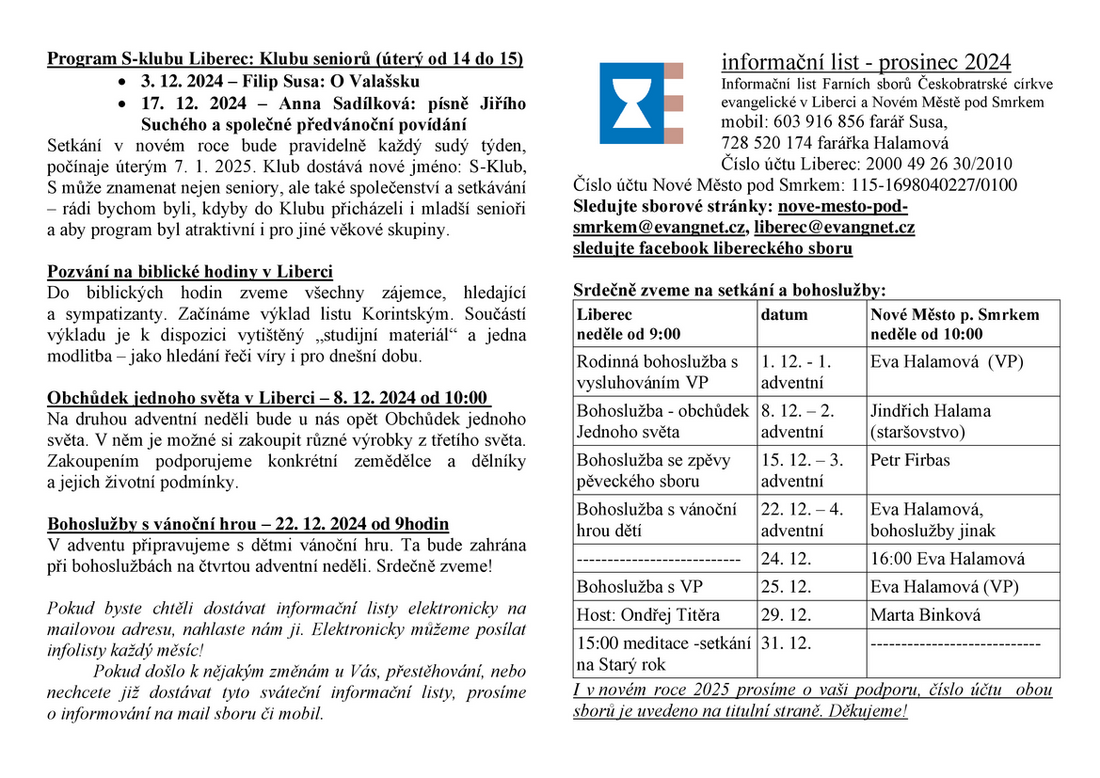S novým měsícem vyšel nový informační list, ve kterém se dozvíte aktuální prosincové dění.